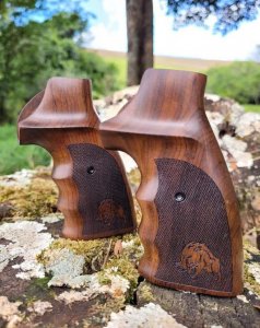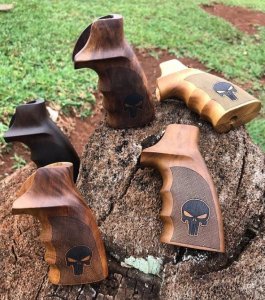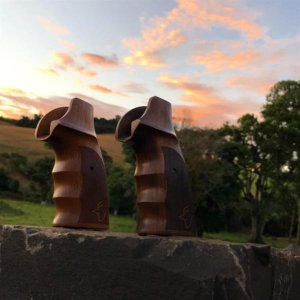 Empunhaduras de madeira para revo?lveres.