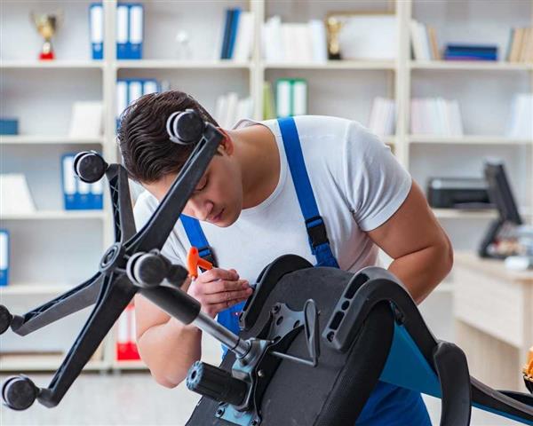 Profissional especializado com consertos de cadeiras.
