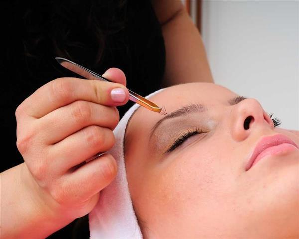Profissional especializada com extensão de cílios.
