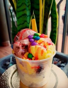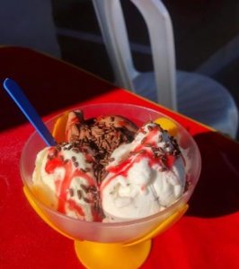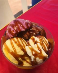 - Sorvete de baunilha e muito mais.